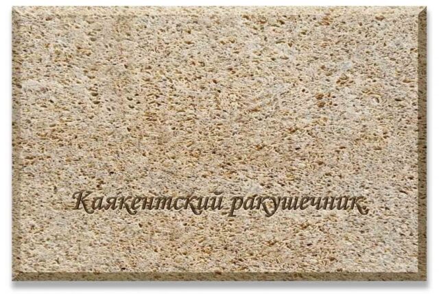 Природный камень, плитка из какякентского ракушечника, пиленная с шести сторон. Используется для облицовки фасадов, также для выстилания двора и дорожек